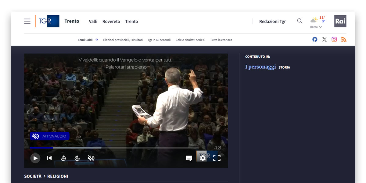 Racconta il Vangelo e lo spiega anche attraverso l'arte, la Divina Commedia diventa per tutti. Stiamo parlando di Gregorio Vivaldelli, un biblista un po' particolare. Anche lo scorso venerdì, tutto esaurito al Palarotari di Mezzocorona