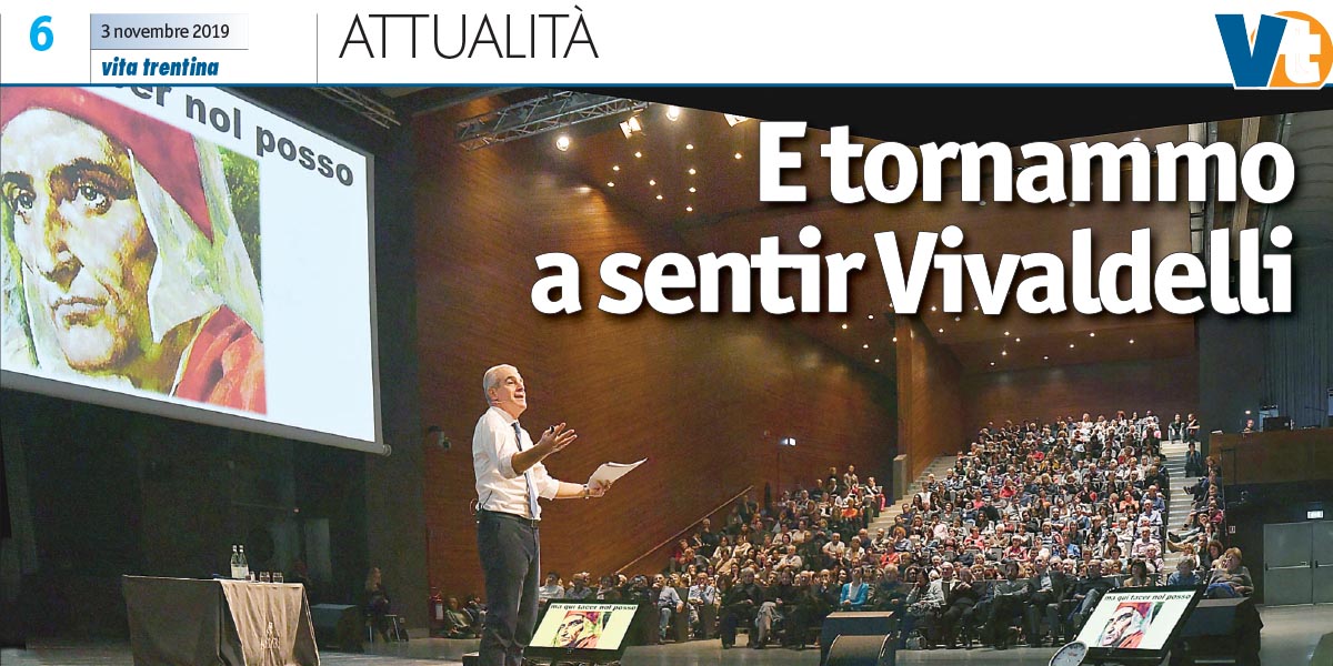 Oltre 1.500 i presenti al PalaRotari di Mezzocorona. Ancora un tutto esaurito per l’Inferno di Dante. O meglio, per il biblista Gregorio Vivaldelli che continua a offrire ai trentini, sempre più numerosi, la sua presentazione della Divina Commedia.