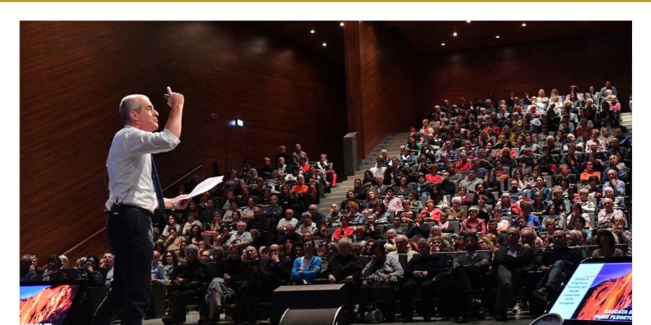 Oltre 1.500 i presenti al PalaRotari di Mezzocorona. Ancora un tutto esaurito per l’Inferno di Dante. O meglio, per il biblista Gregorio Vivaldelli che continua a offrire ai trentini, sempre più numerosi, la sua presentazione della Divina Commedia.