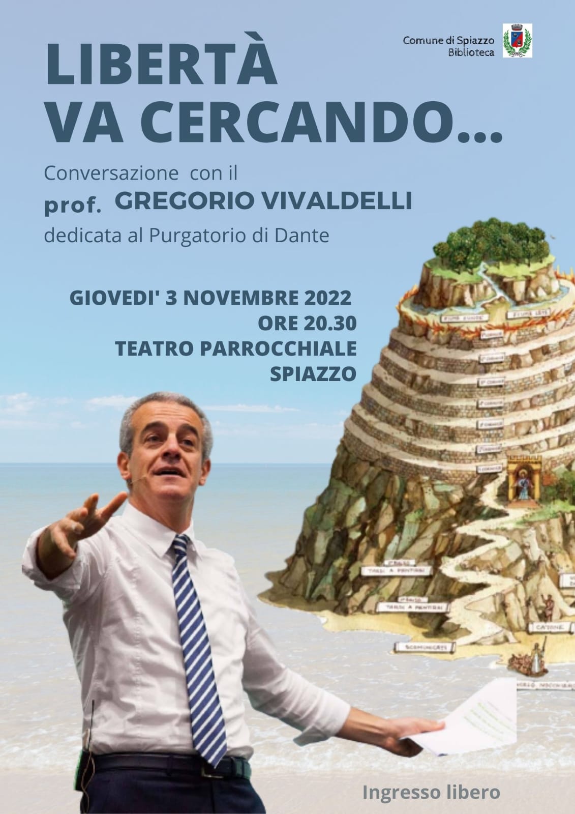 La Biblioteca Comunale di Pinzolo propone un incontro con la Divina Commedia tenuto dal professor Gregorio Vivaldelli, il quale descriverà il sorprendente viaggio nel Purgatorio di Dante.