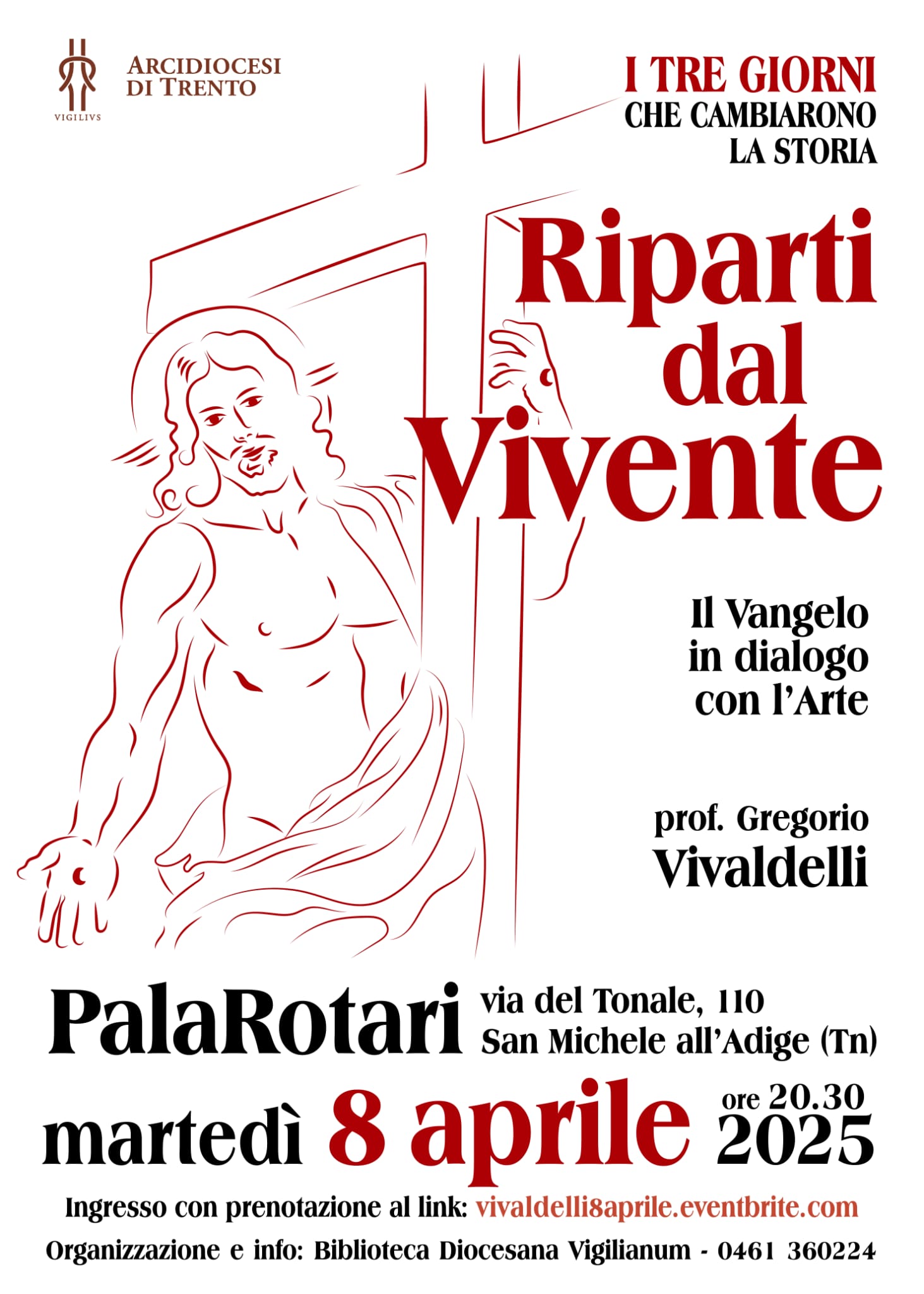Nella serata di martedì 8 aprile 2025 – dal titolo: Riparti dal Vivente – il prof. Vivaldelli descriverà gli episodi evangelici che narrano gli incontri con Gesù Risorto.