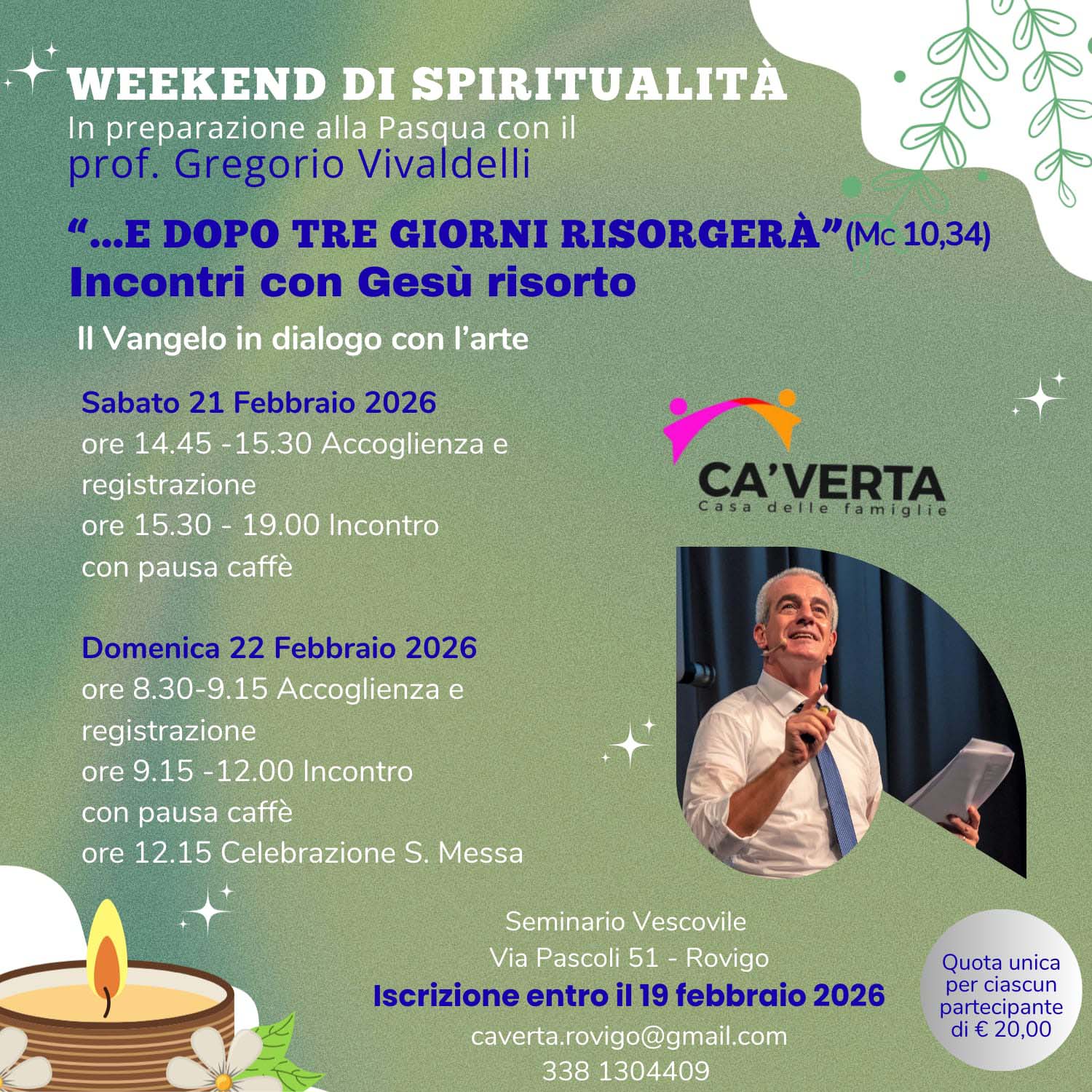 Un weekend di spiritualità e formazione con il Prof. Gregorio Vivaldelli.