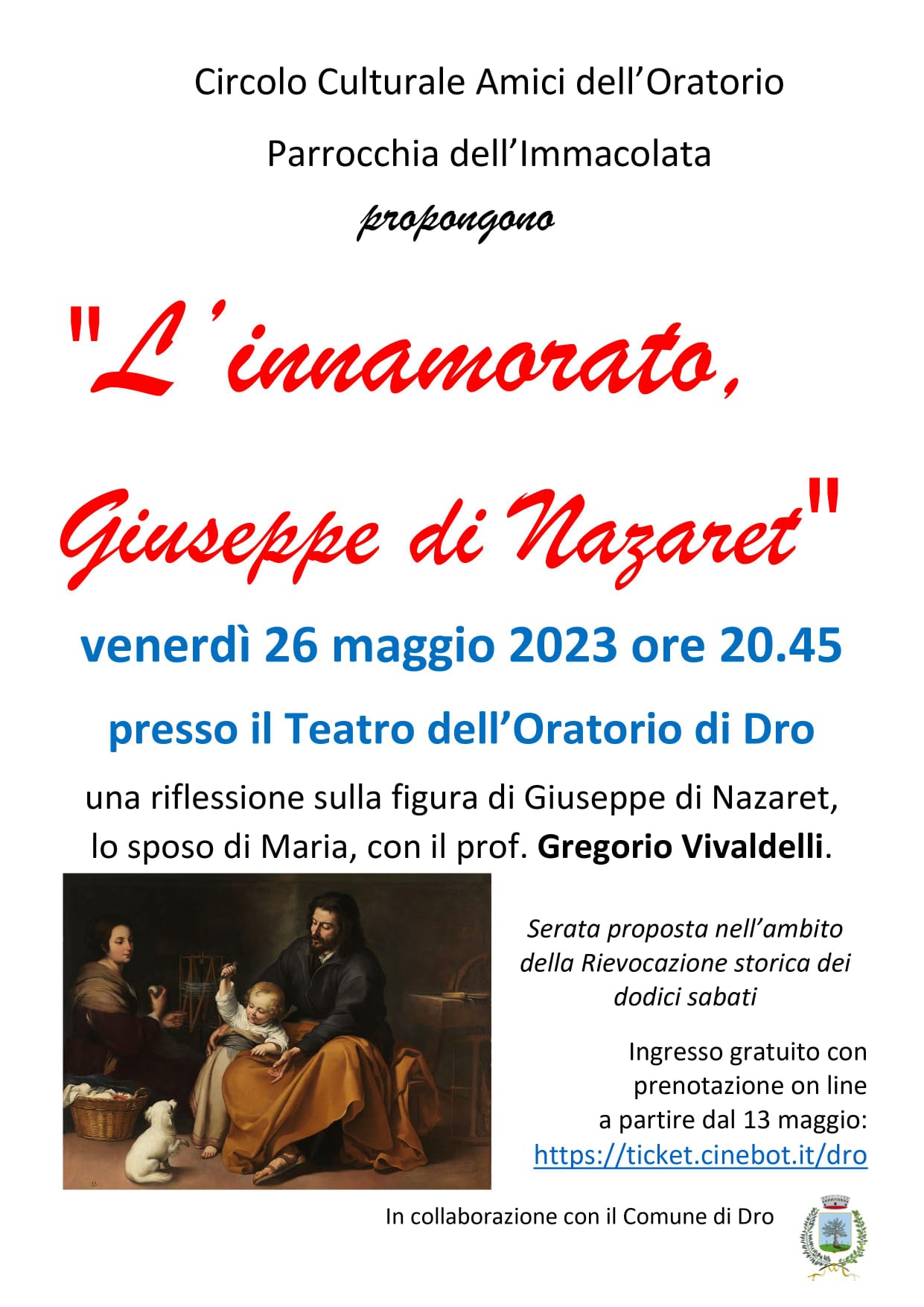 In occasione della rievocazione storica del voto di S. Abbondio o dei dodici sabati per la scampata peste, il Circolo Amici dell'Oratorio di Dro propone una serata pubblica con il prof. Gregorio Vivaldelli.
